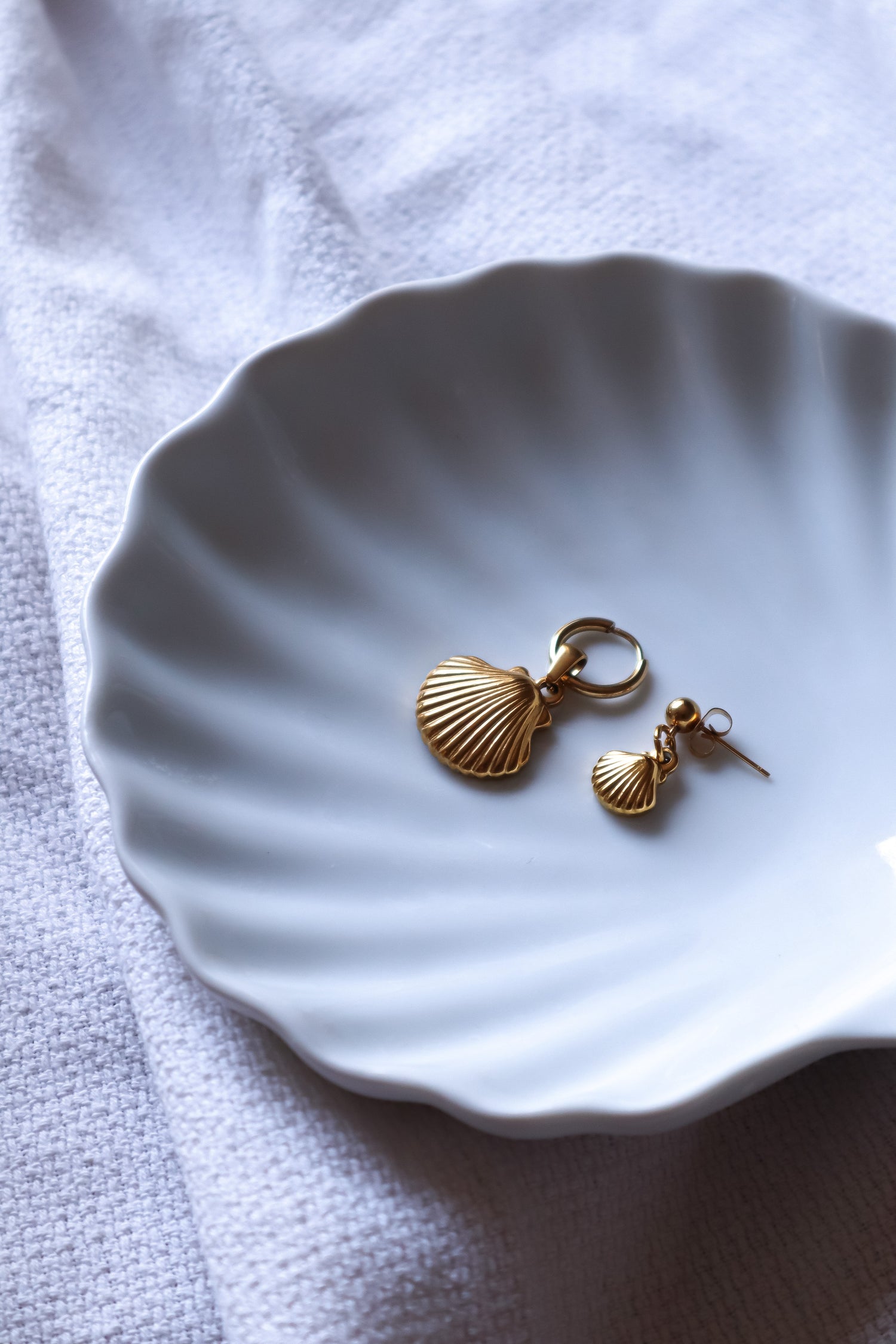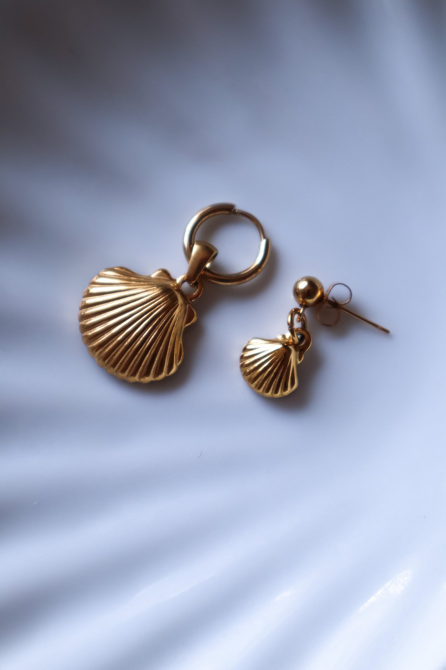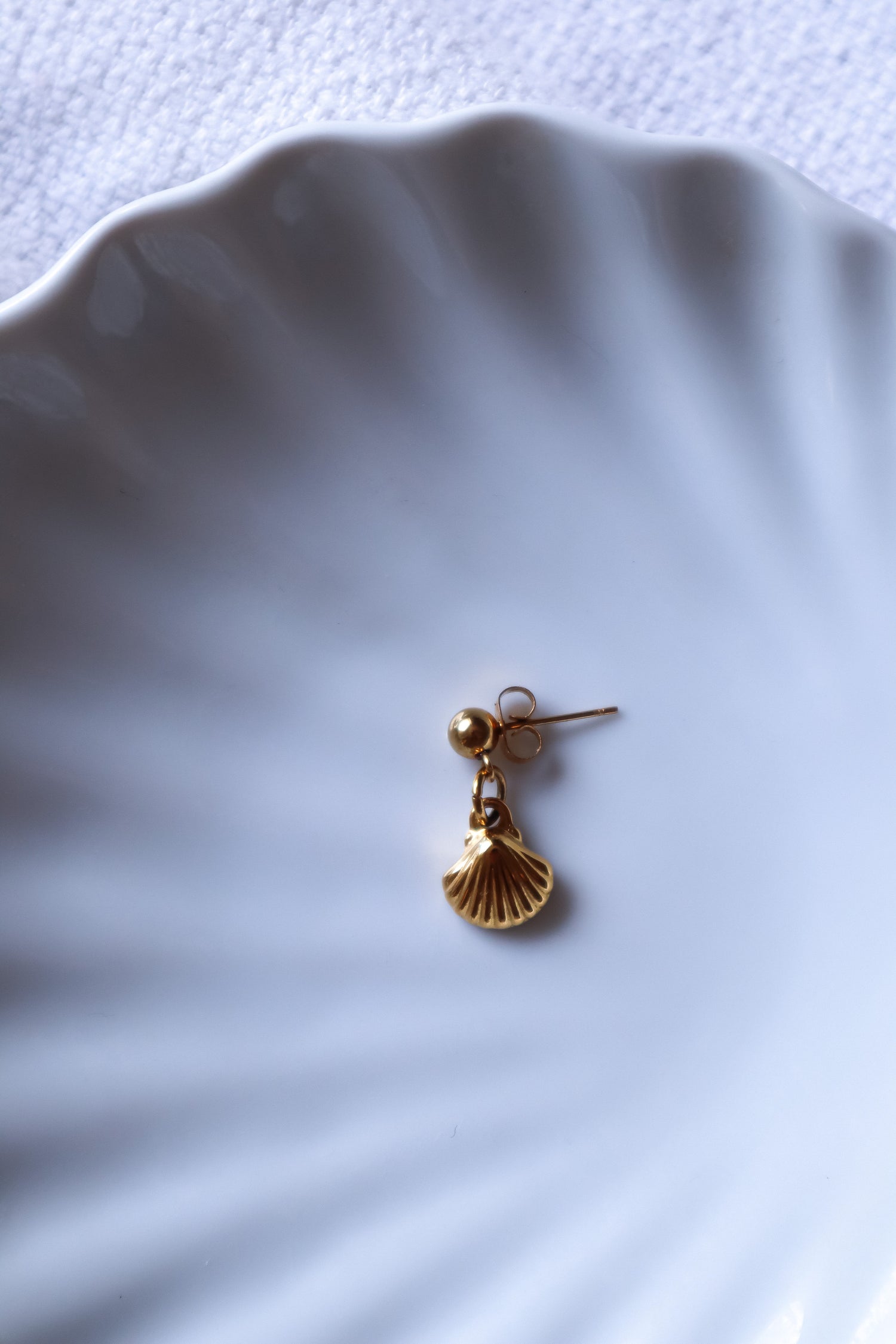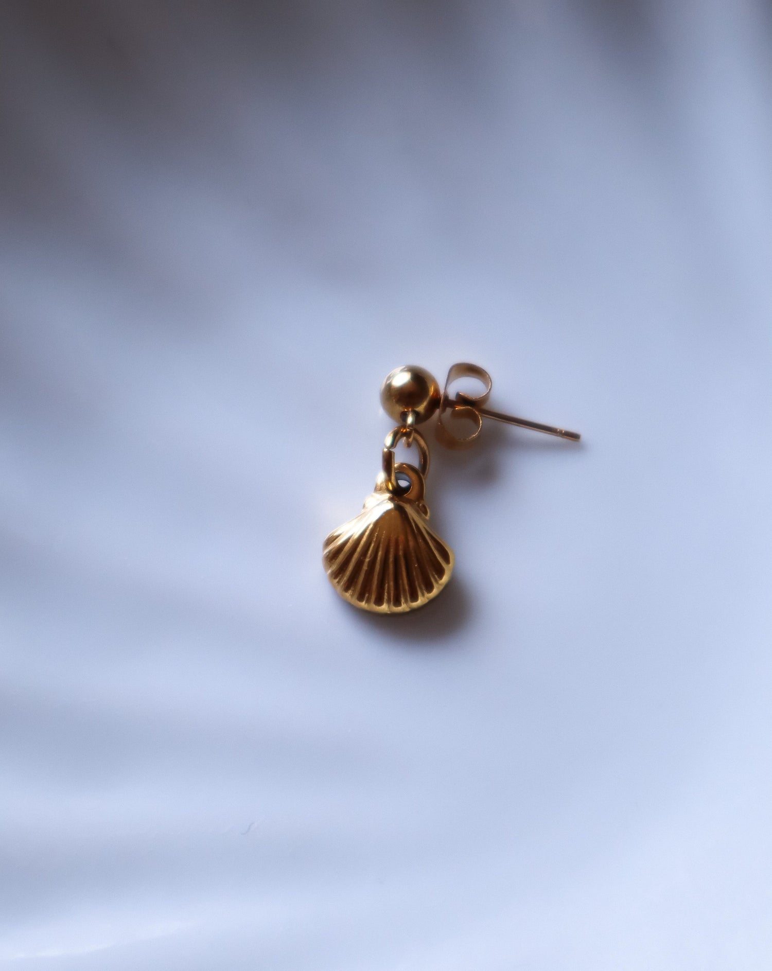 Monoboucle composé d'une petite puce d'oreille et d'un petit pendentif coquillage.